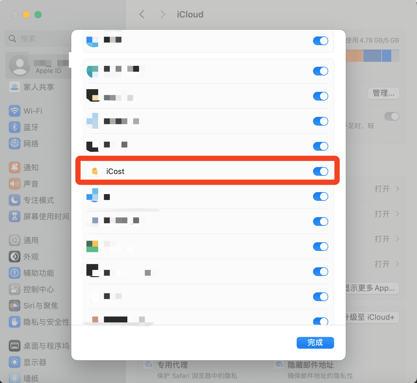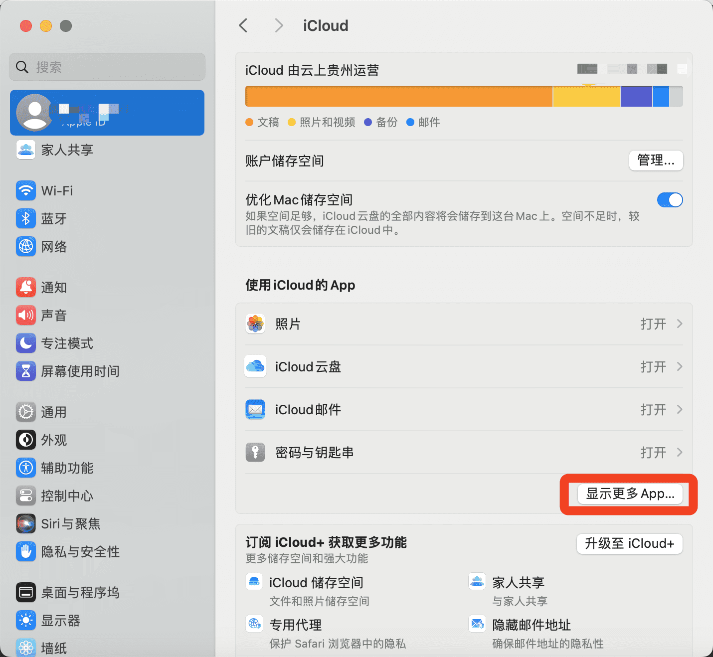 # 1. System Settings page -> Apple ID -> iCloud -> Show more apps -> iCost