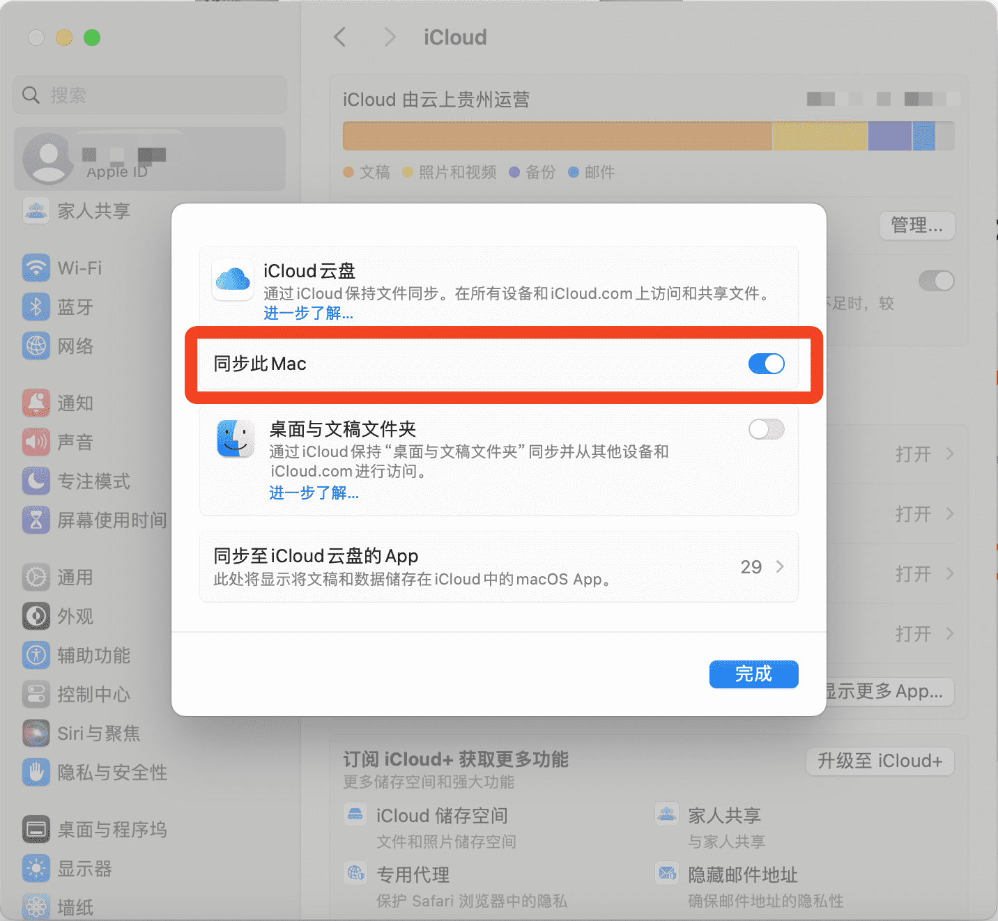 # 2. System Settings page -> Apple -> iCloud -> iCloud Drive -> Sync this Mac