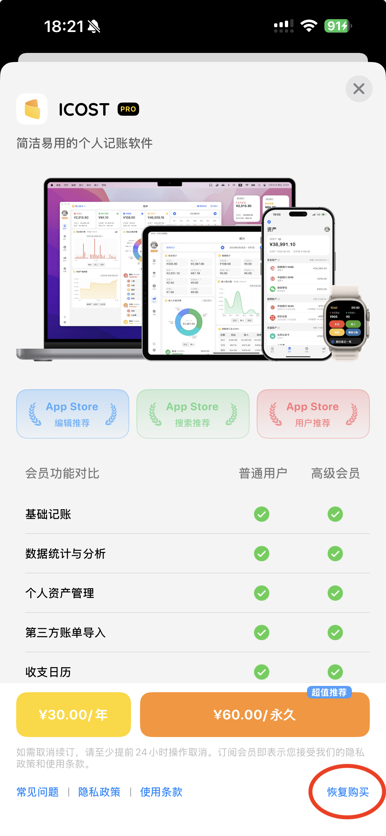 You can go to the purchase page and manually click the "Restore Purchase" button to regain your previous membership status.